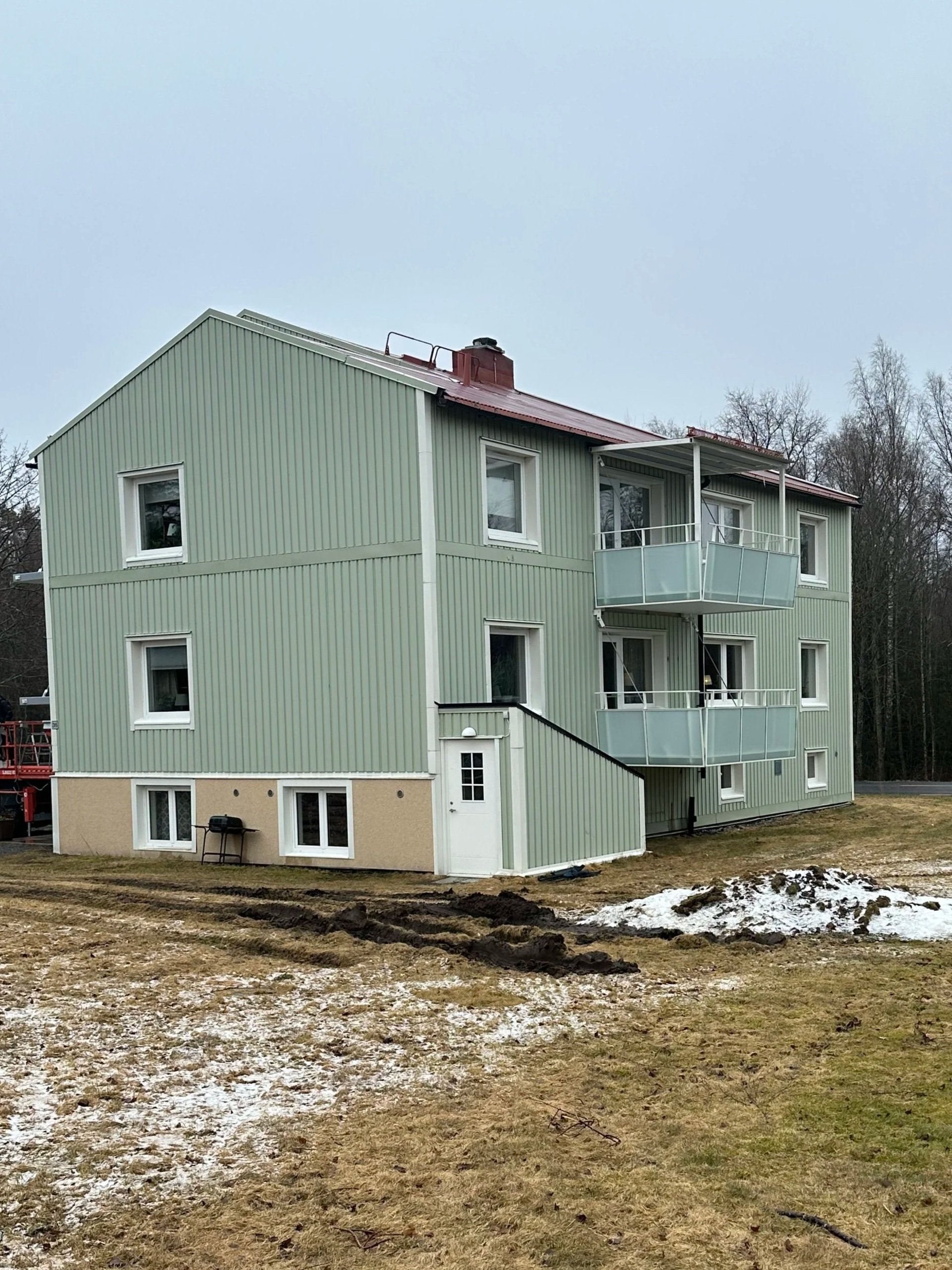 Det återstår en del arbeten innan balkongerna går att tas i bruk. Men nu kan vi verkligen föreställa oss hur det går att njuta på balkongen med en kopp kaffe i solen till sommaren. Ett välkommet tillskott till lägenheterna på Bangatan!